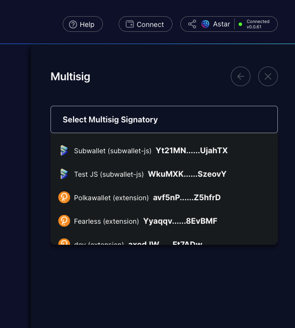 PolkaSafe integrates with Polkadot's multisig solution, offering seamless user experience and robust security features for managing assets in the Polkadot ecosystem. You can use the multisig accounts created on PolkaSafe with the Astar Portal.