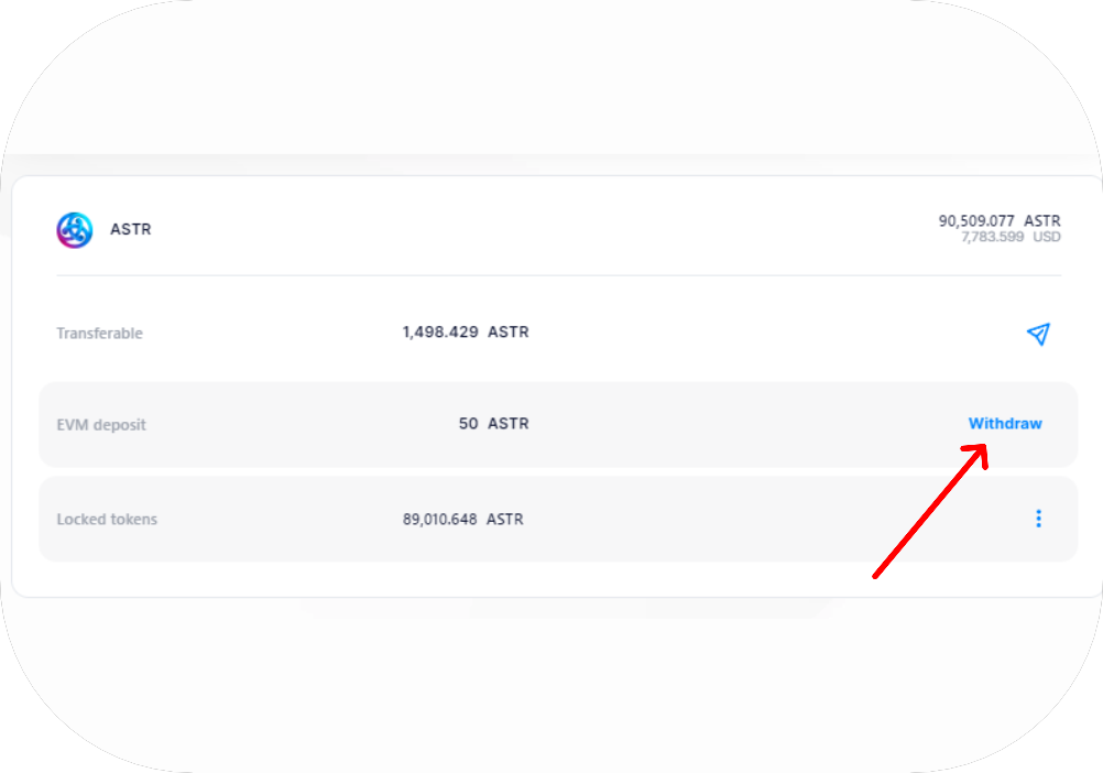 - Choose the substrate token you want to withdraw from Astar Network to another chain;
