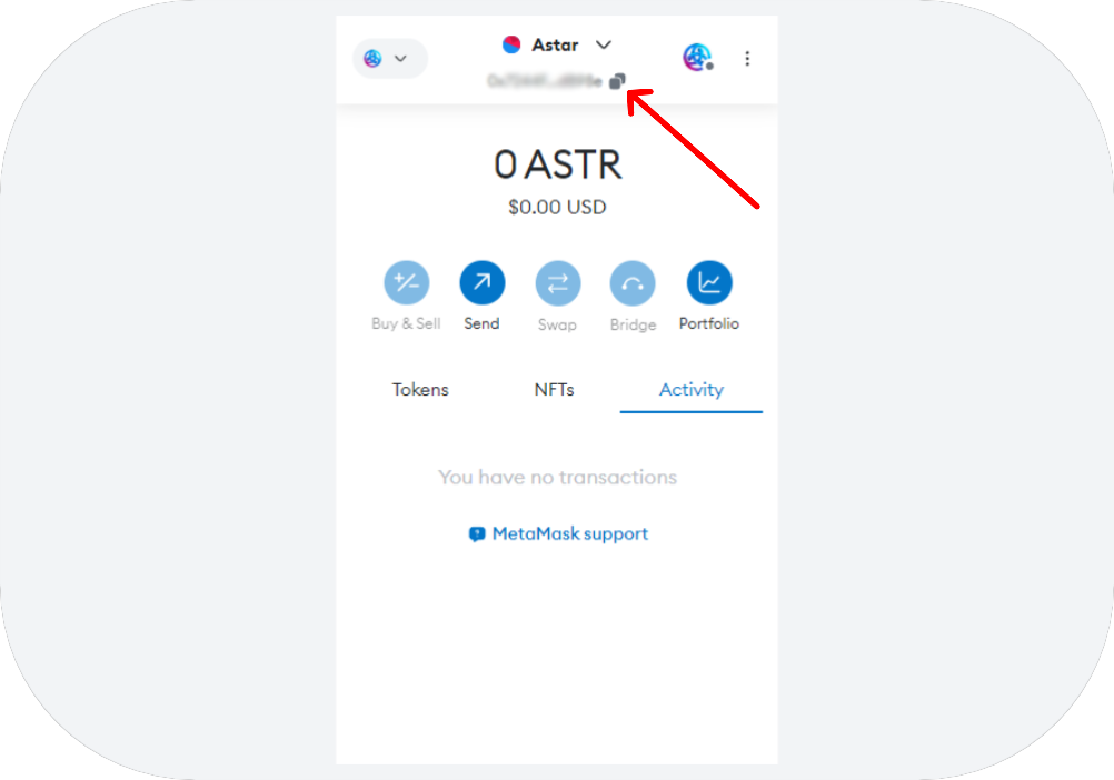 - Visit the Astar Portal and connect your Astar Substrate account to copy the address to which you want to receive your tokens;