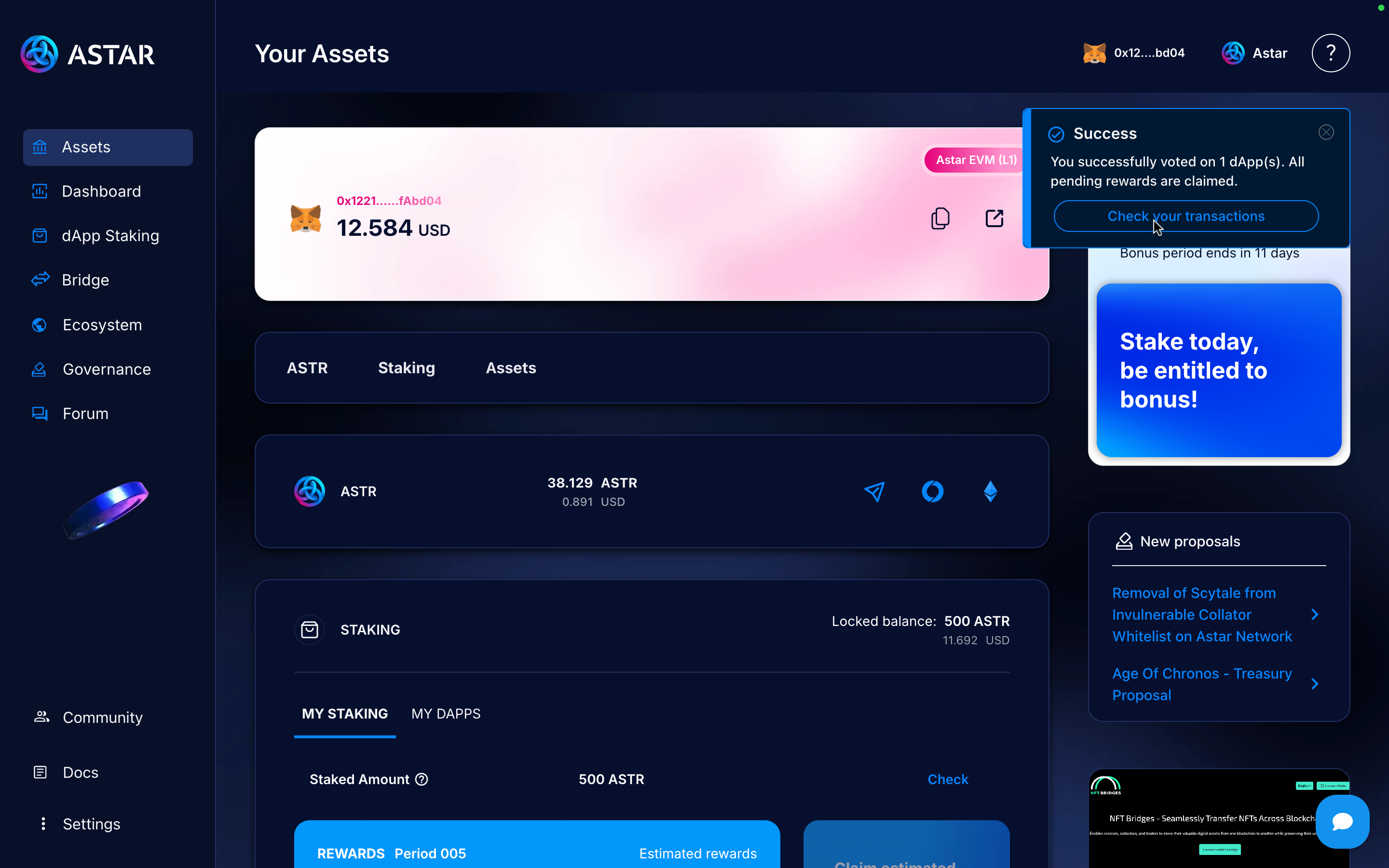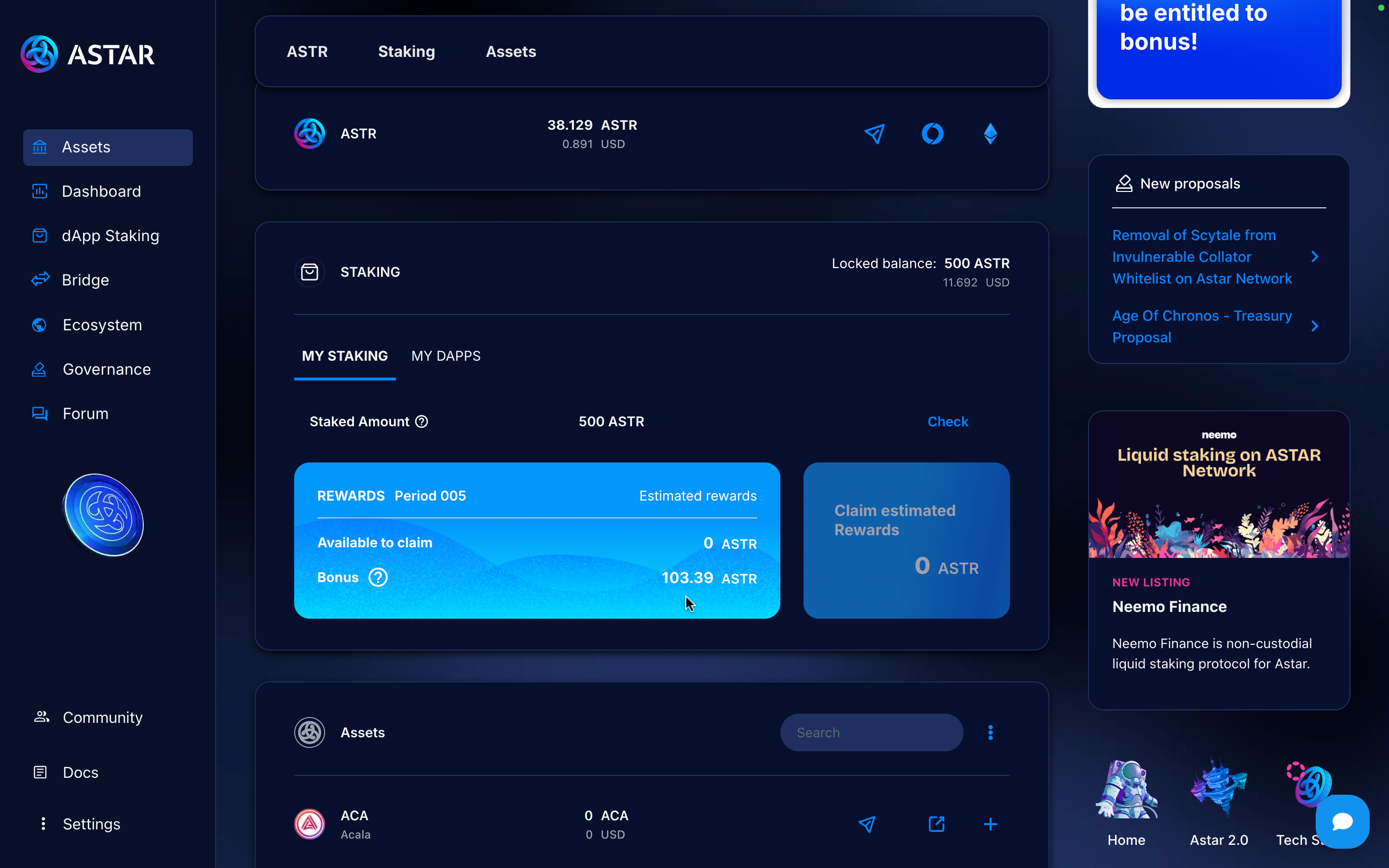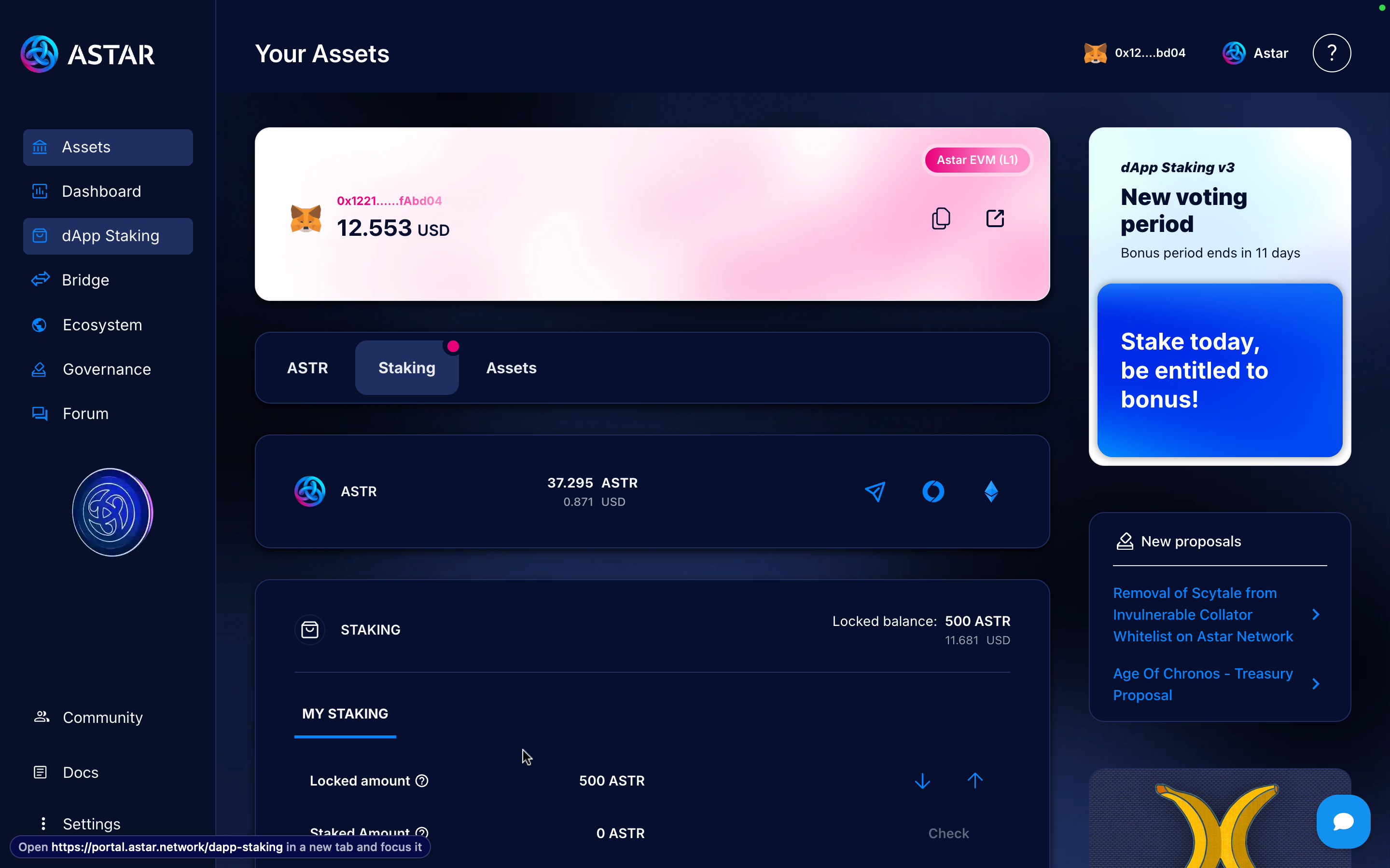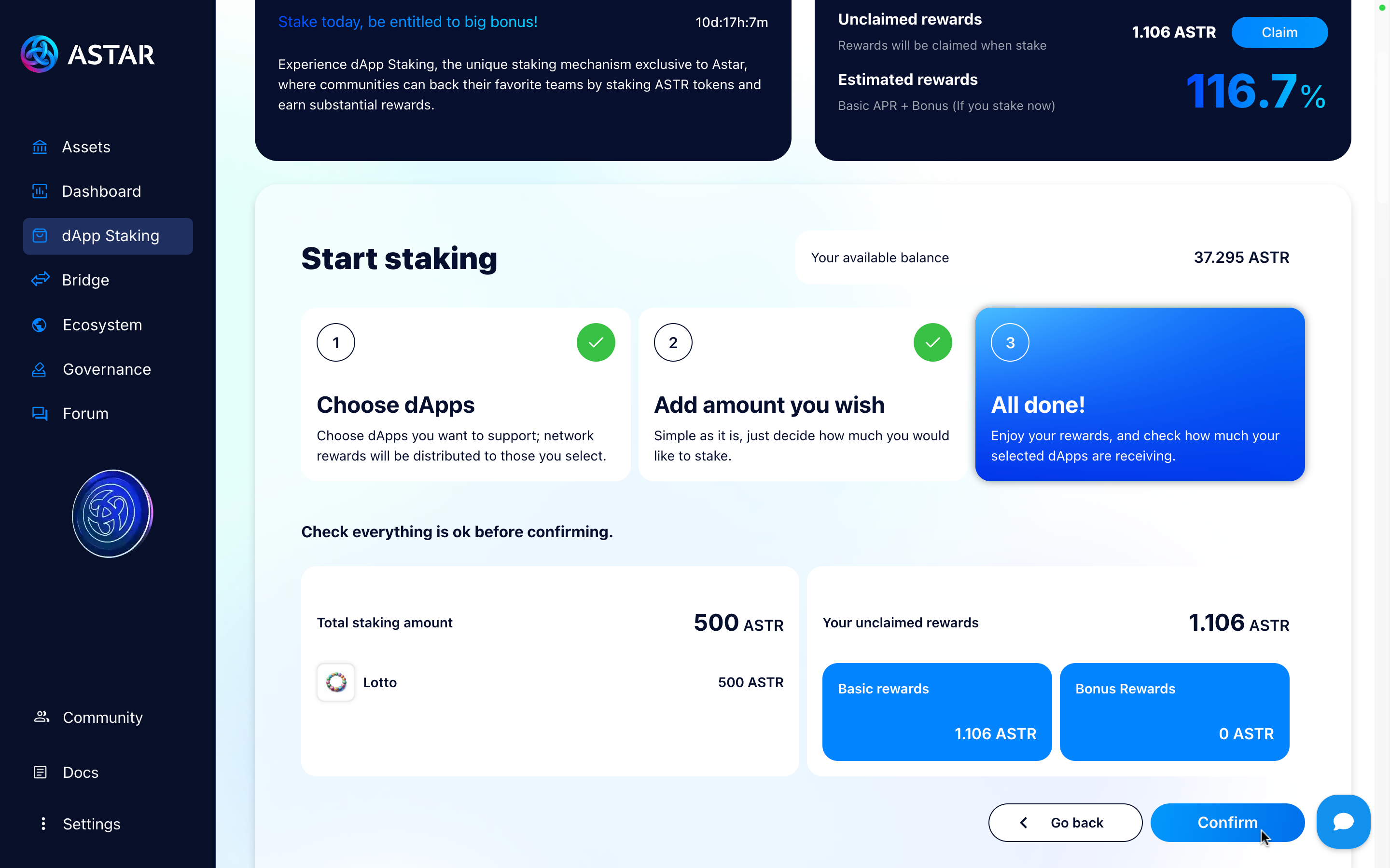 - Minimum of 500 ASTR required to stake