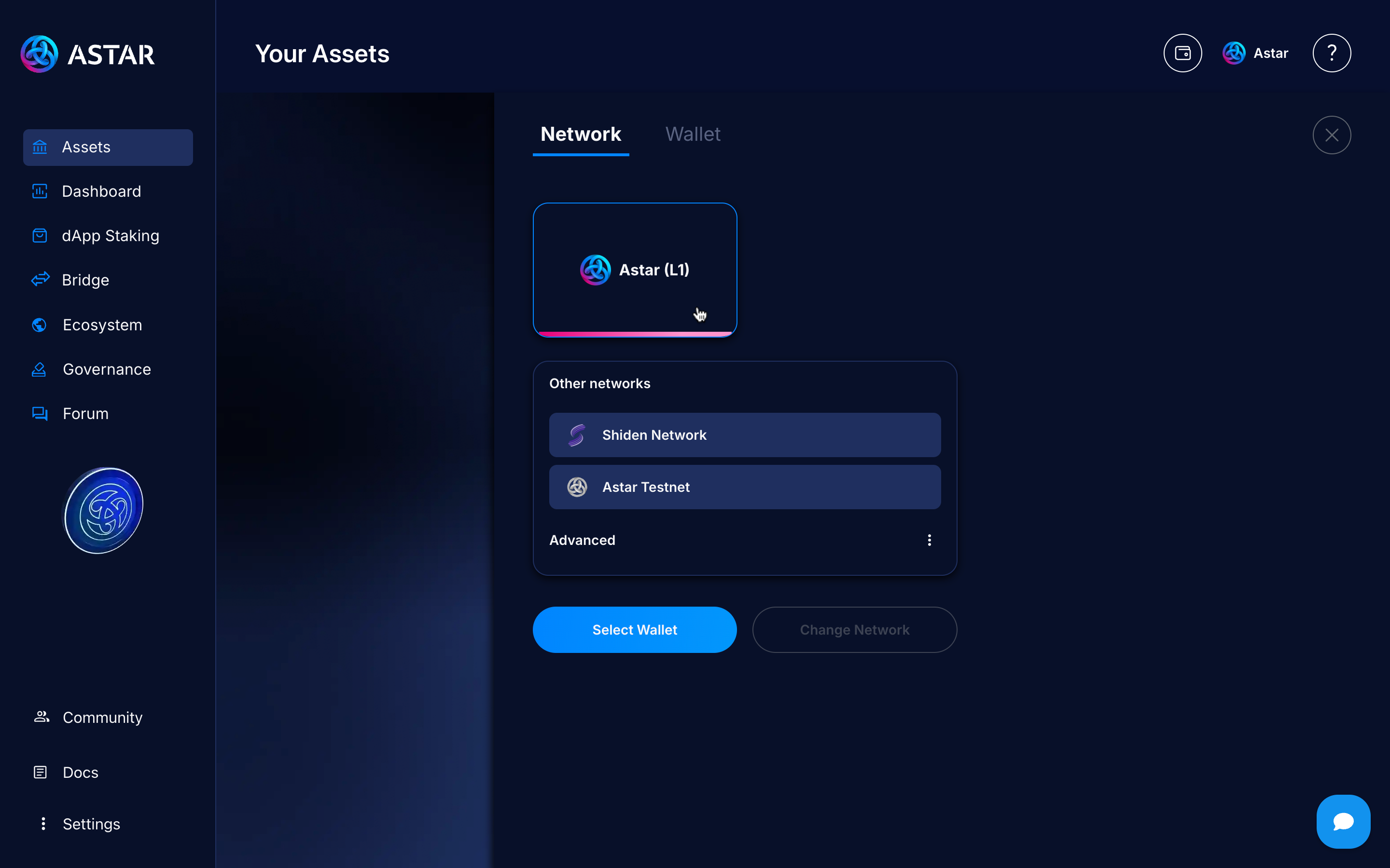 Select the network, in this case, Astar (L1).
